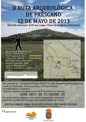 Ya esta en marcha la II Ruta Arqueol贸gica de Frescano el pr贸ximo 12 de Mayo de 2013, recorreremos los cinco yacimientos arqueol贸gicos de la I edad del hierro declarados BIC ( bien de inter茅s cultural)